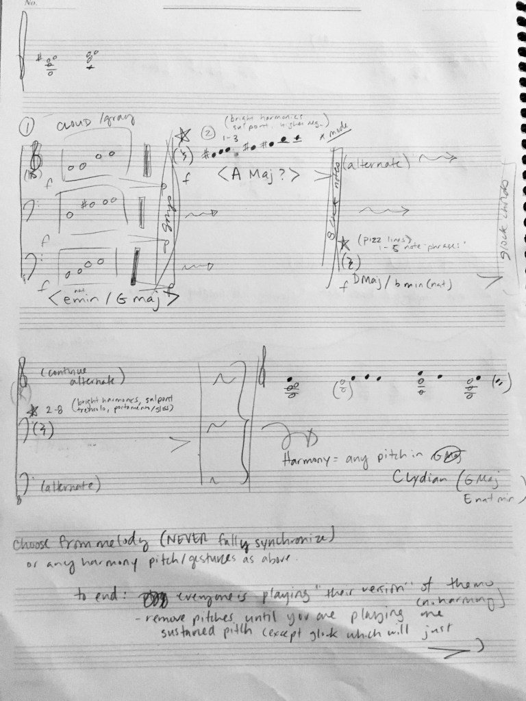 I asked the performers to consider what stories they would tell in a dystopian future – remembrances of the past worth holding on to. Compositionally, I limited the pitches available for each performer, gradually adding on to generate more sonic space. Suggestions for playing techniques and colors of timbre were suggested, but the performer was ultimately free to decide. Individual stories were to be supported by the ensemble, with guided transitions between each tale. Written for Hezarfen Ensemble on this occasion.